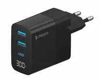 СЗУ-2USB + 1USB-C, Deppa PD, QC 3.0, 30W, дисплей, черный, 11395