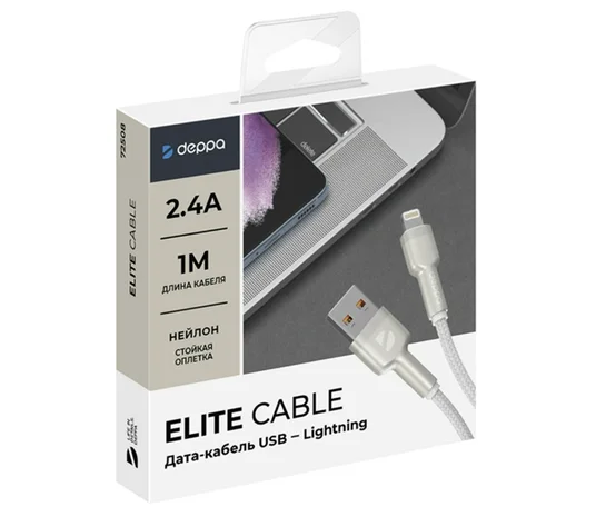 Кабель Deppa Elite Lightning - USB белый, 1м, 72508