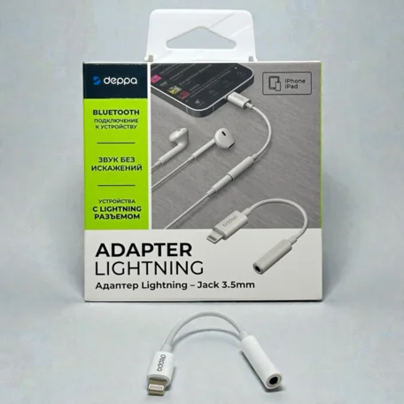 Переходник- адаптер Lightning - 3.5 jack, белый, Deppa, 72404 в