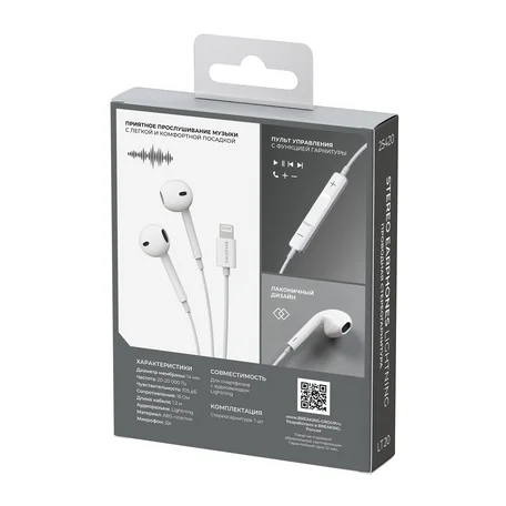 Стереогарнитура Breaking LT20 внутриканальные, Lightning, 1,2м (Белый) 25420