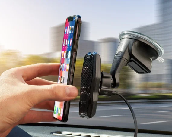 Особенности держателя: Подходит для смартфонов, Поворот на 360 градусов, Магнитный держатель, Беспроводная зарядка Qi
