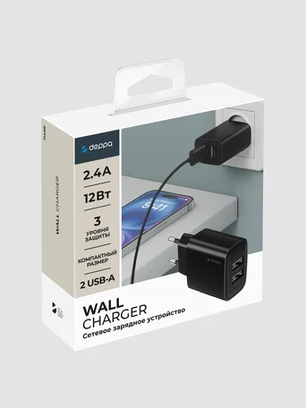 СЗУ-2USB Deppa, 2.4A, черный