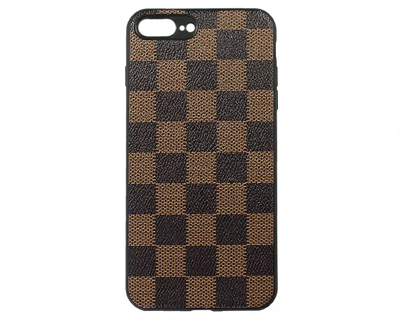 Чехол iPhone 7/8 Plus Экокожа (клетка-коричневый)