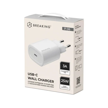 СЗУ Breaking P-06, USB-C, PD 25W, 3.0A (Белый), 22264