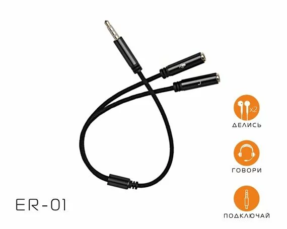 Аудио сплиттер, разветвитель 3.5мм Y кабель GSM ER-01