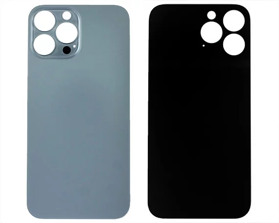 Задняя крышка (cтекло) iPhone 13 Pro Max (с увел. вырезом) синяя 1 класс