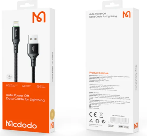 Кабель McDodo CA-7410 Lightning - USB черный, Auto Disconnect 1,2м