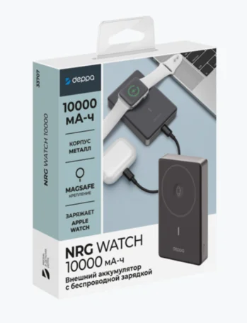 Внешний АКБ 10000 mAh NRG Watch, MagSafe, 15Вт, Deppa, серый, 33707 в Омске