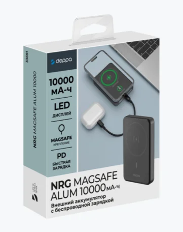 Внешний АКБ NRG MageSafe Alum 10000 мА-ч, 15Вт QI, серый, Deppa в Омске