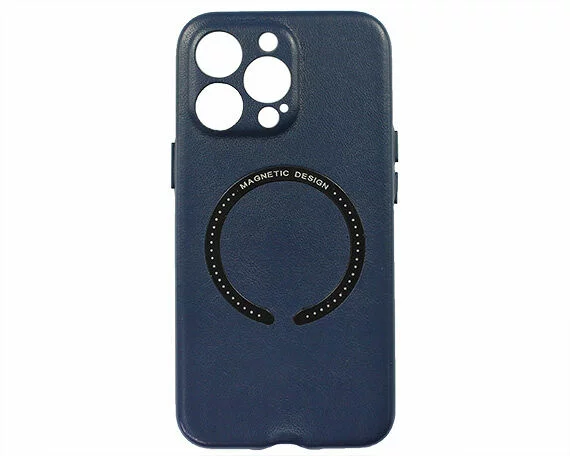 Чехол iPhone 13 Pro Leather Magnetic, темно-синий