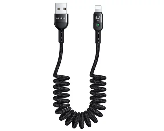 Кабель McDodo CA-6410 Lightning - USB пружина, черный 1,8м