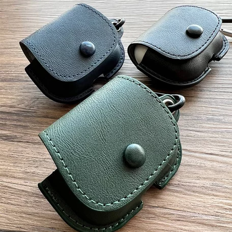 Чехол AirPods 3 Матовая кожа, с кнопкой (синий)