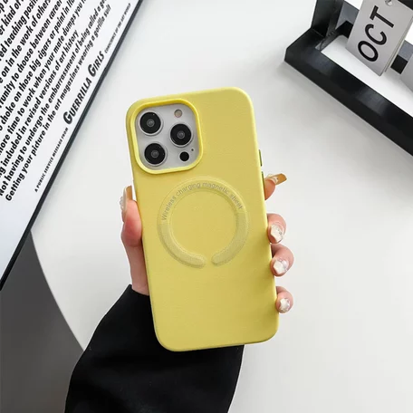 Чехол iPhone 13 Leather Candy MagSafe (желтый) Чехол iPhone 13 Leather Candy MagSafe (желтый)