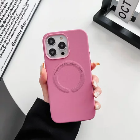 Чехол iPhone 14 Leather Candy MagSafe (розовый) Чехол iPhone 14 Leather Candy MagSafe (розовый)