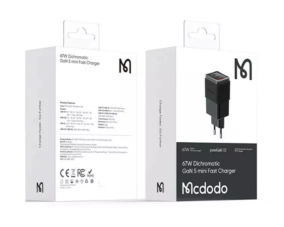 СЗУ-1USB+2USB-C McDodo CH-1501 70W GaN 5 mini, черный
