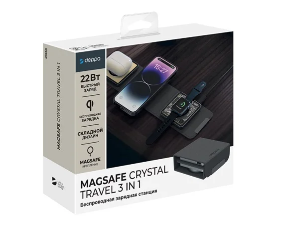 Зарядная станция 3в1 Deppa MagSafe Fold Travel QI складная, черная, 23153