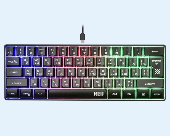 Клавиатура USB игровая Defender Red GK-116 RU, радужная подсветка, 61кнопка, 45117