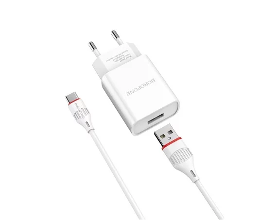 СЗУ-1USB Borofone BA20A + кабель Type-C, белый