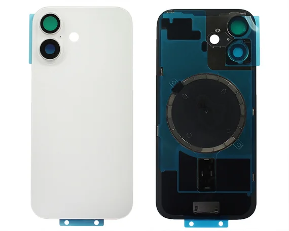 Задняя крышка (стекло) iPhone 16 (со стеклом камеры в сборе+магнит) белая 1 класс