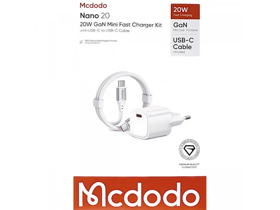 СЗУ-1USB-C McDodo CH-4048+кабель Type-C-Type-C, 20W 3A GAN Nano, белый
